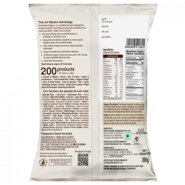 24 MANTRA ORGANIC FLAX SEEDS 200 g