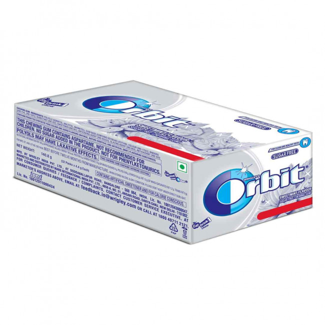 Each sleeve contains 8 pellets of orbit sugar free sweetmint chewing gum