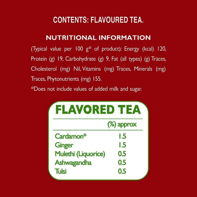 Red Label Natural Care contains Tulsi which helps build body resistance and Mulethi which helps soothe the throat