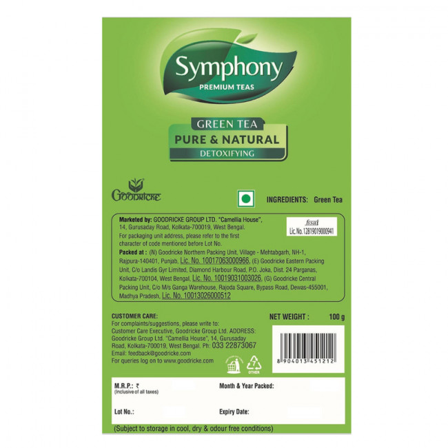 Our Symphony Tea is a testimony to an active lifestyle. Relish life's little moments with the perfect cup from the quaint foothills of the Himalayas. Naturally rich in goodness, this green tea is the perfect combination of benefits and taste. With years of experience in tea making, Goodricke promises a symphony of the mind, body, and soul with each sip.