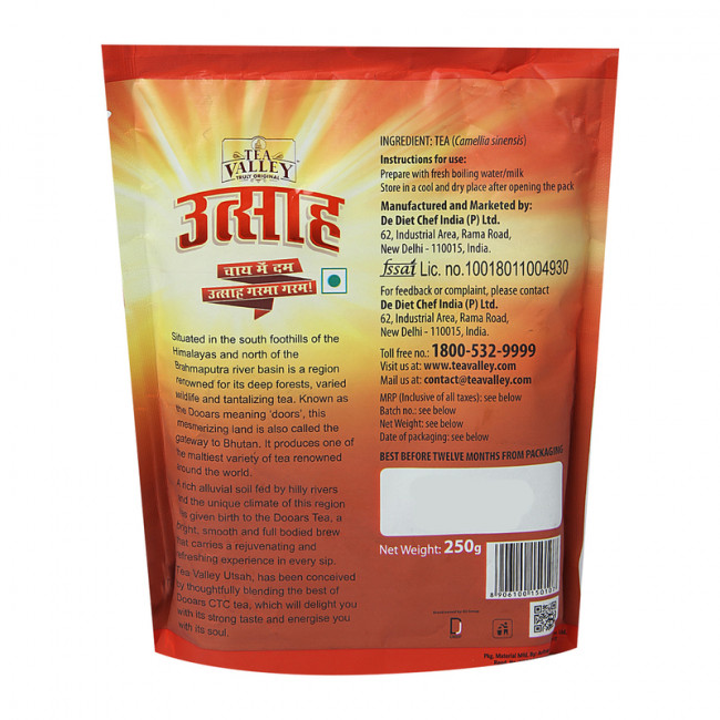 Tea Valley Utsah, has been conceived by thoughtfully blending the best of Dooars CTC tea. This tantalising tea hails from the foothills of Himalayas, a region known as the Dooars meaning Doors, producing one of the maltiest varieties of tea renowned around the world. Tea Valley Utsah is a bright, smooth and full bodied brew that carries a rejuvenating and refreshing experience in every sip you take. Tea Valley Utsah with its delightful strong taste mesmerises your soul.