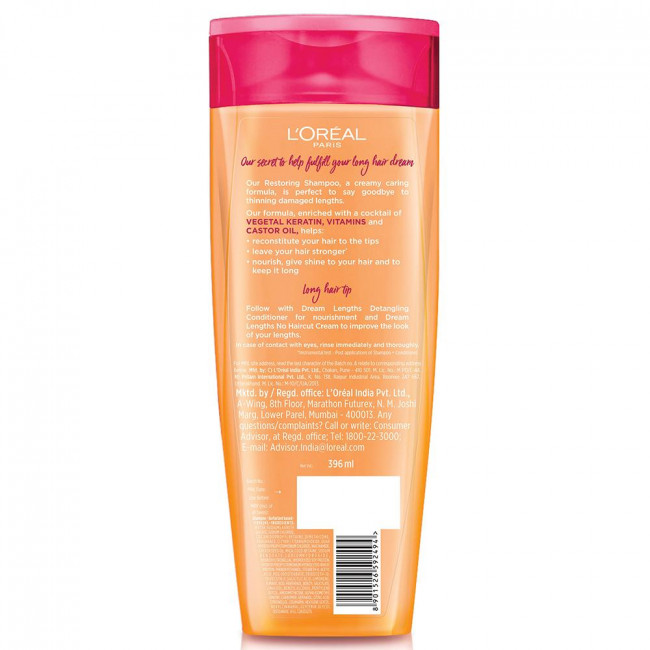 Contents: 1x L'Oréal Paris Shampoo, Nourishes, Repair & Shine, For Long and Lifeless Hair, Dream Lengths, 396ml